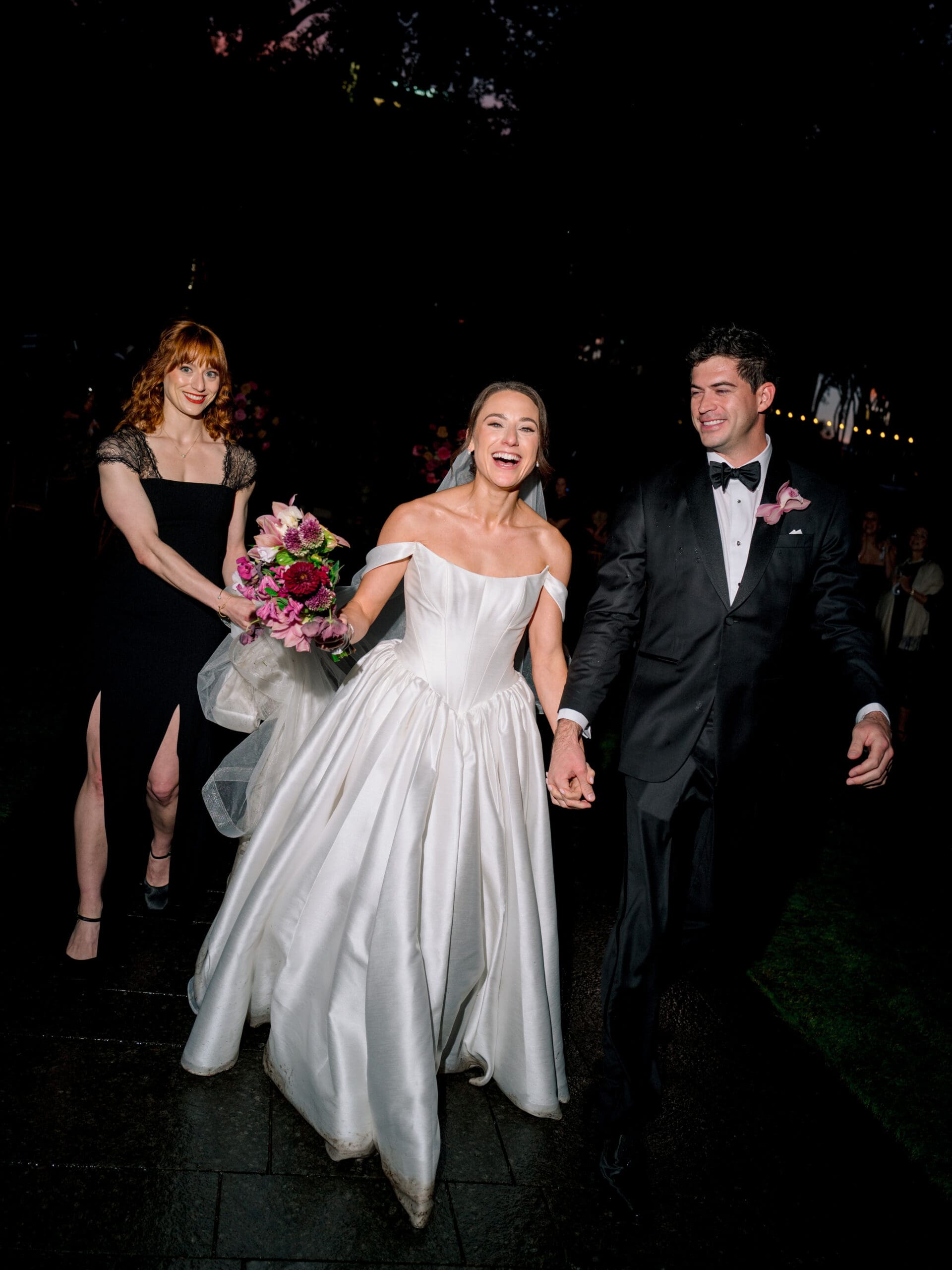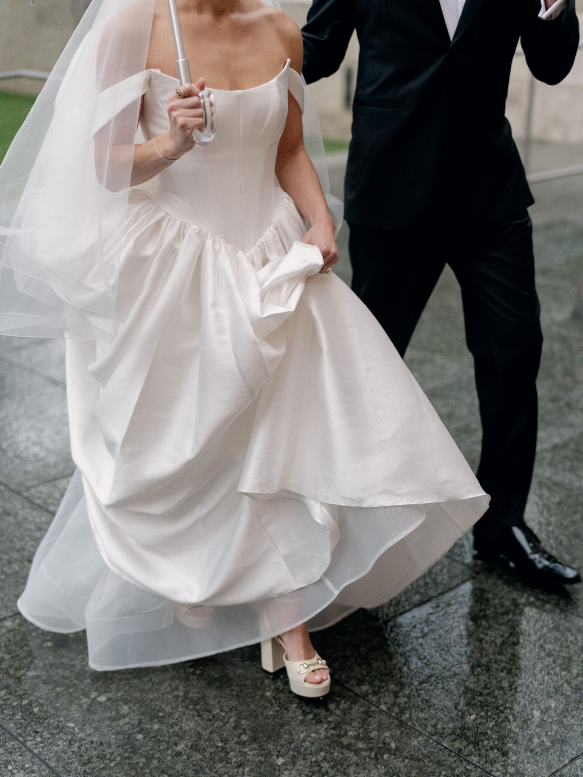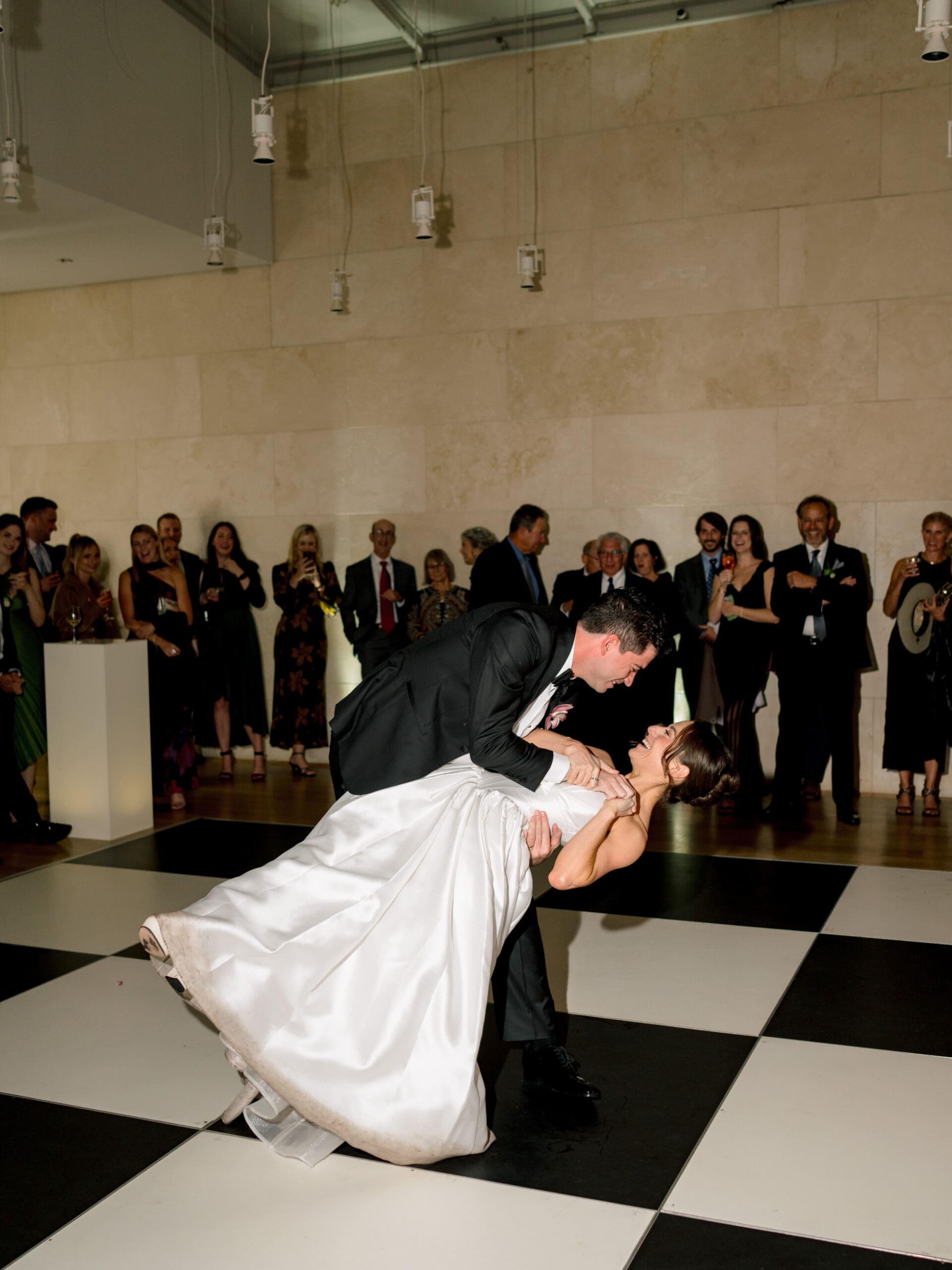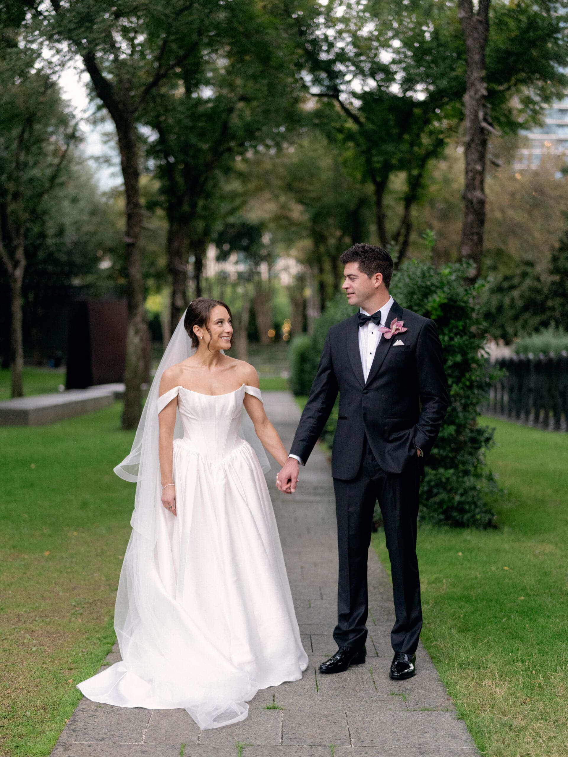 The Nasher Sculpture Garden provided a stunning backdrop for this Dallas wedding, blending contemporary art with lush outdoor spaces. Originally planned as a fully outdoor garden celebration, the day took an unexpected turn when a flood warning hit Dallas. But Sarah had prepared—she’d paid two Etsy witches to keep the rain away, and they sort of came through. A sliver of sunshine appeared just as the ceremony began, allowing Sarah and Brandon to exchange vows outside before moving the reception indoors.