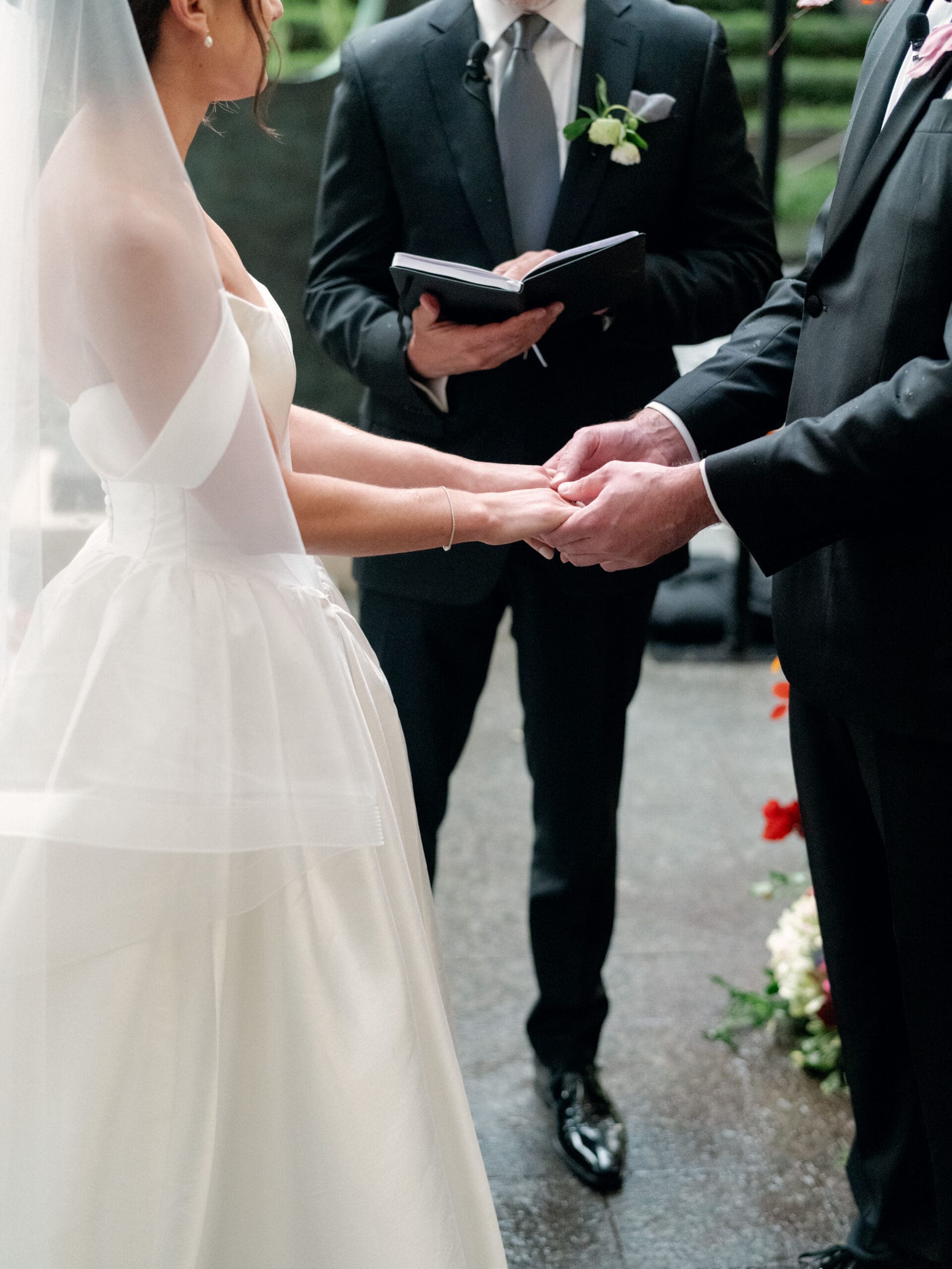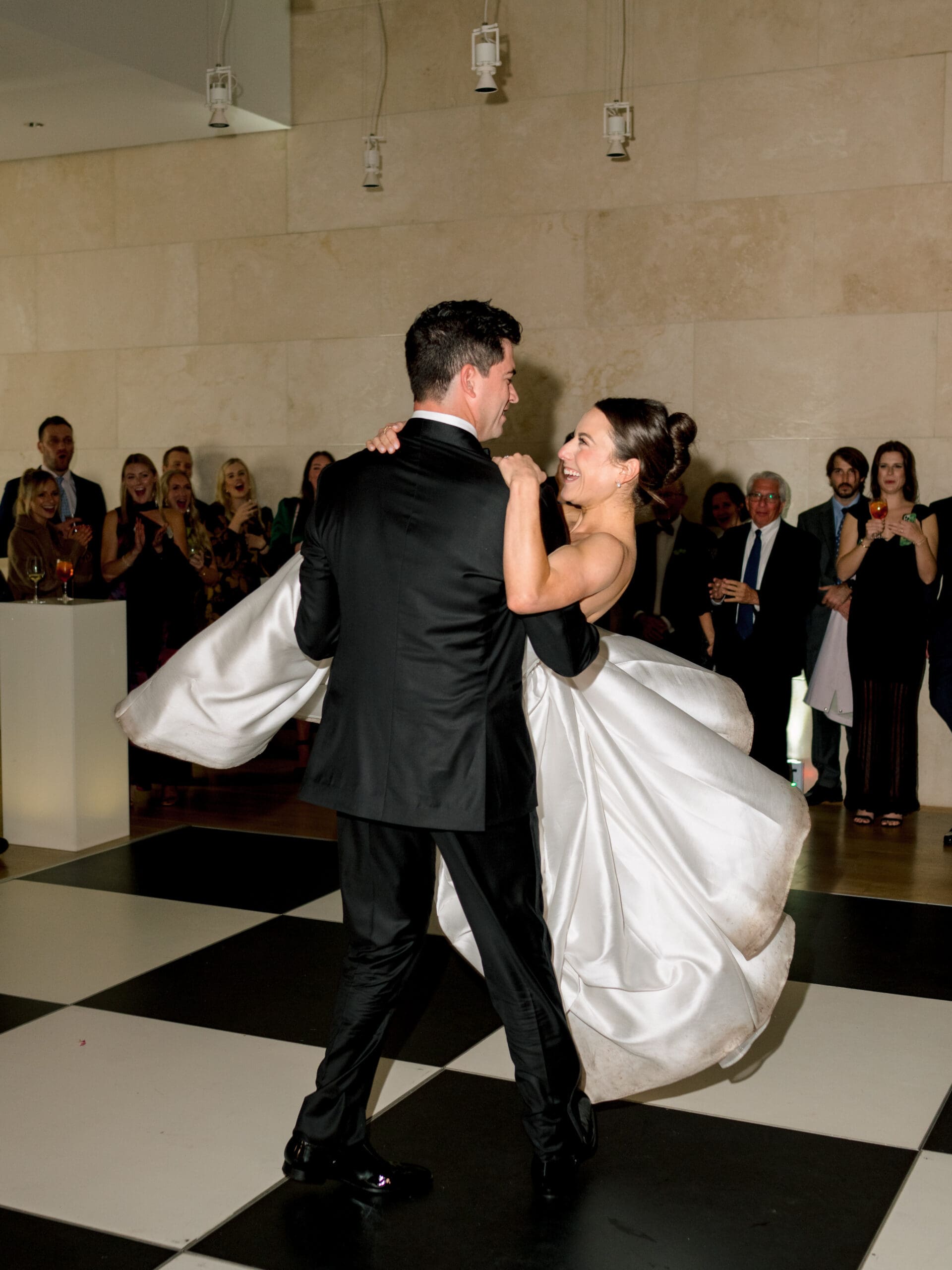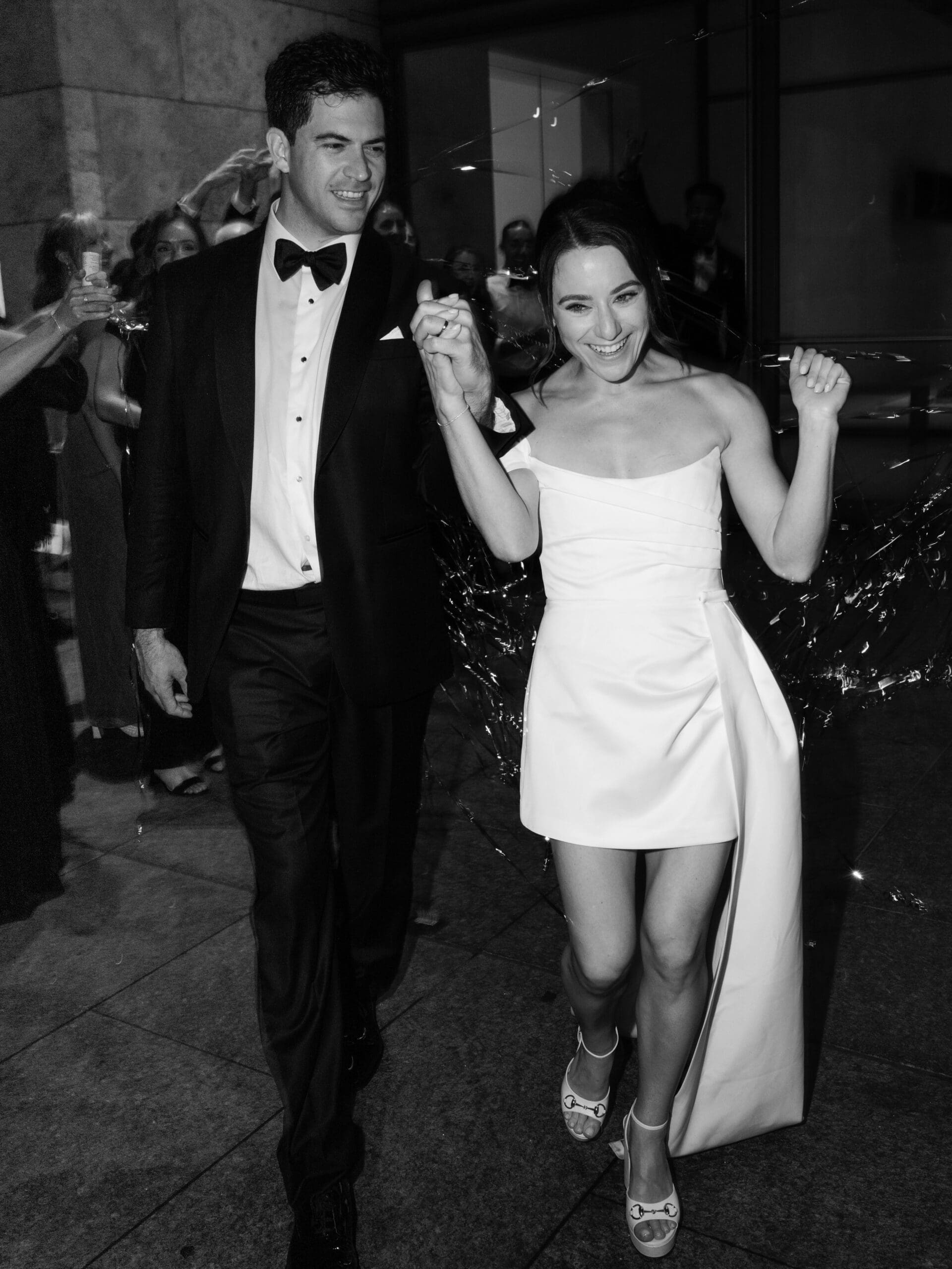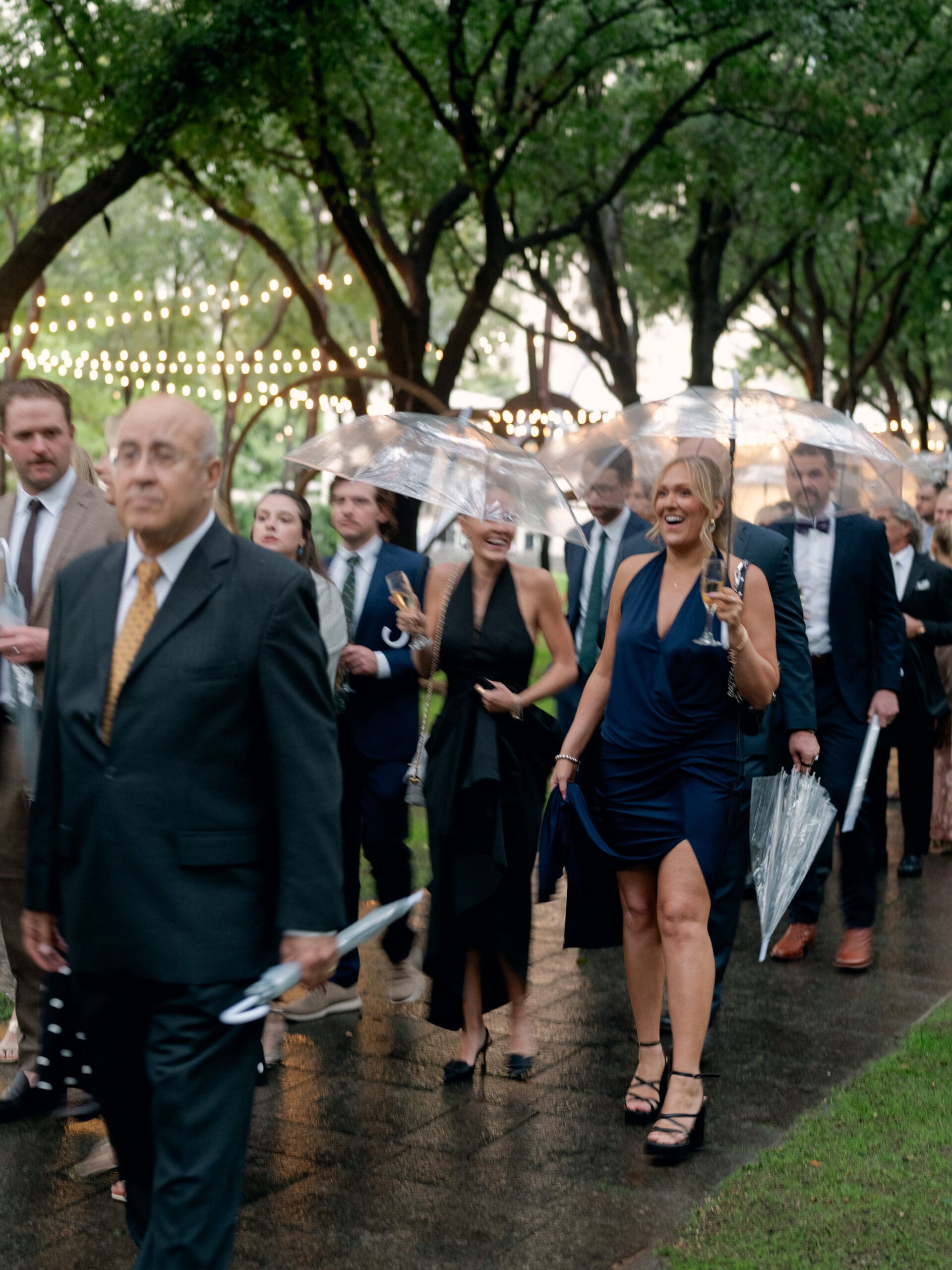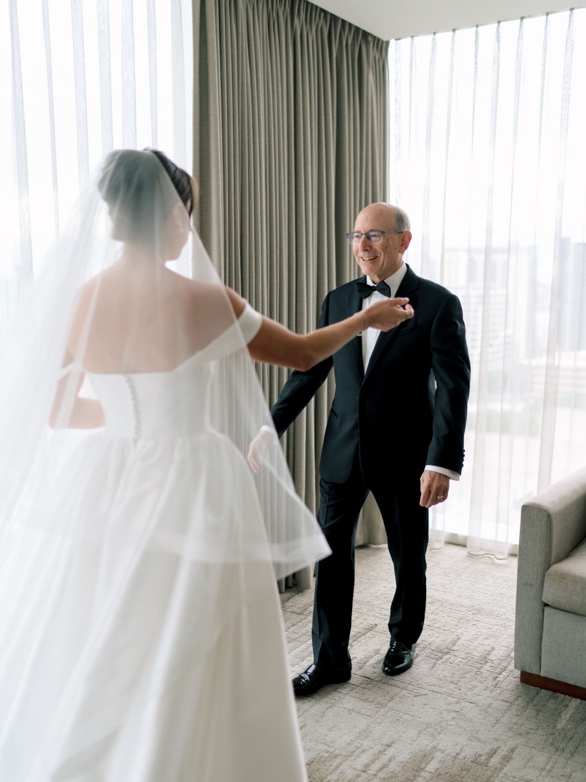 The Nasher Sculpture Garden provided a stunning backdrop for this Dallas wedding, blending contemporary art with lush outdoor spaces. Originally planned as a fully outdoor garden celebration, the day took an unexpected turn when a flood warning hit Dallas. But Sarah had prepared—she’d paid two Etsy witches to keep the rain away, and they sort of came through. A sliver of sunshine appeared just as the ceremony began, allowing Sarah and Brandon to exchange vows outside before moving the reception indoors.