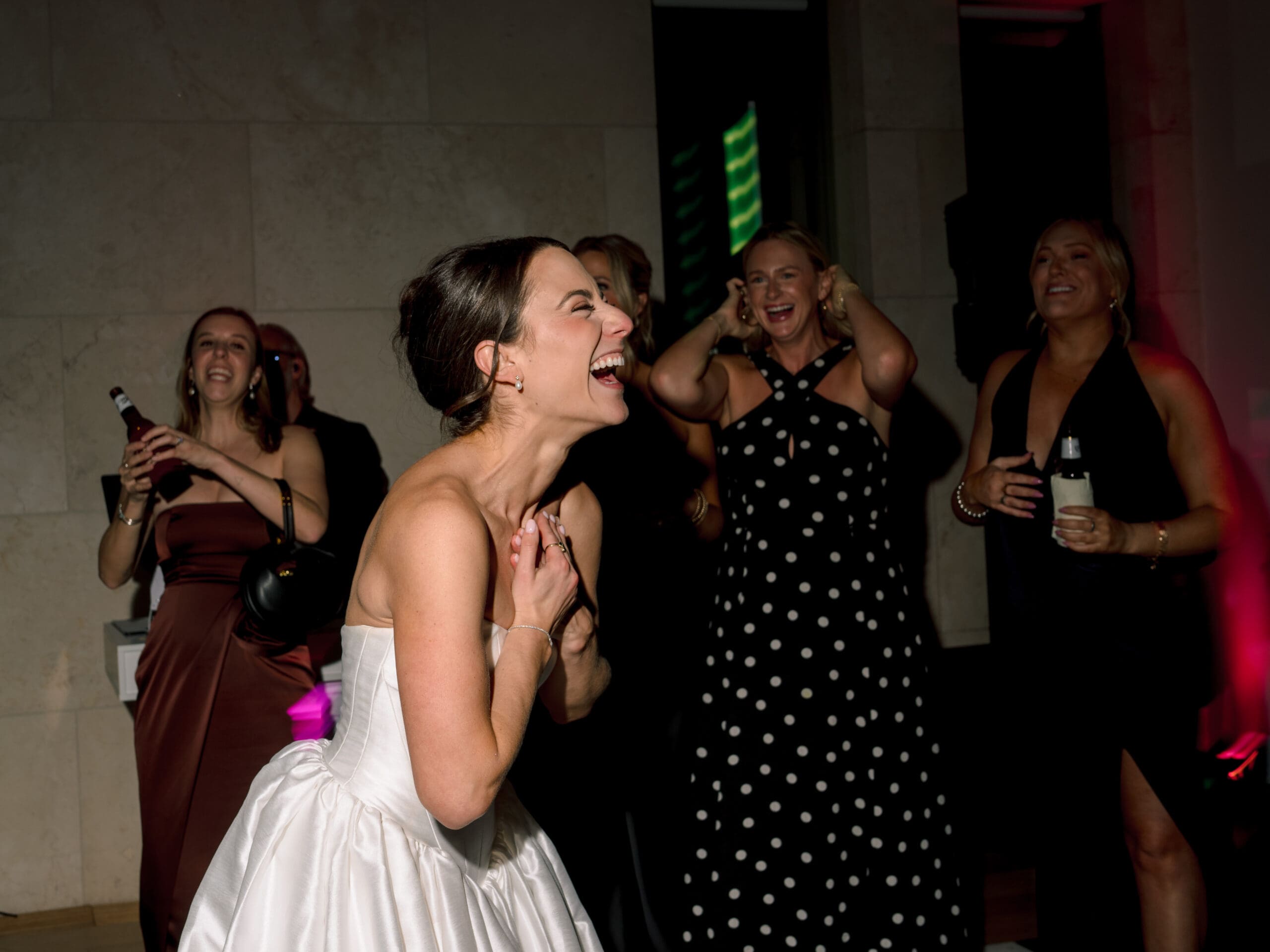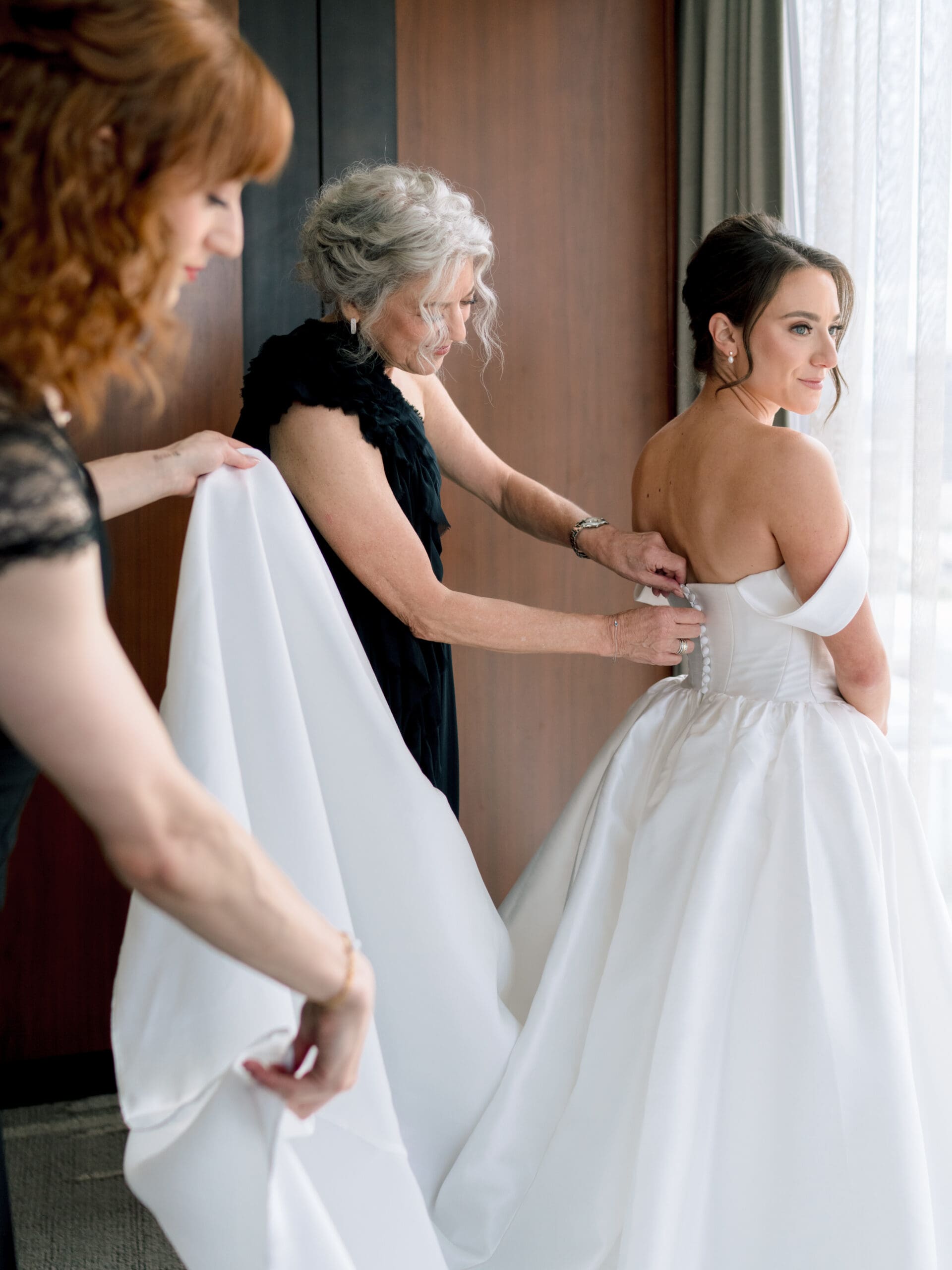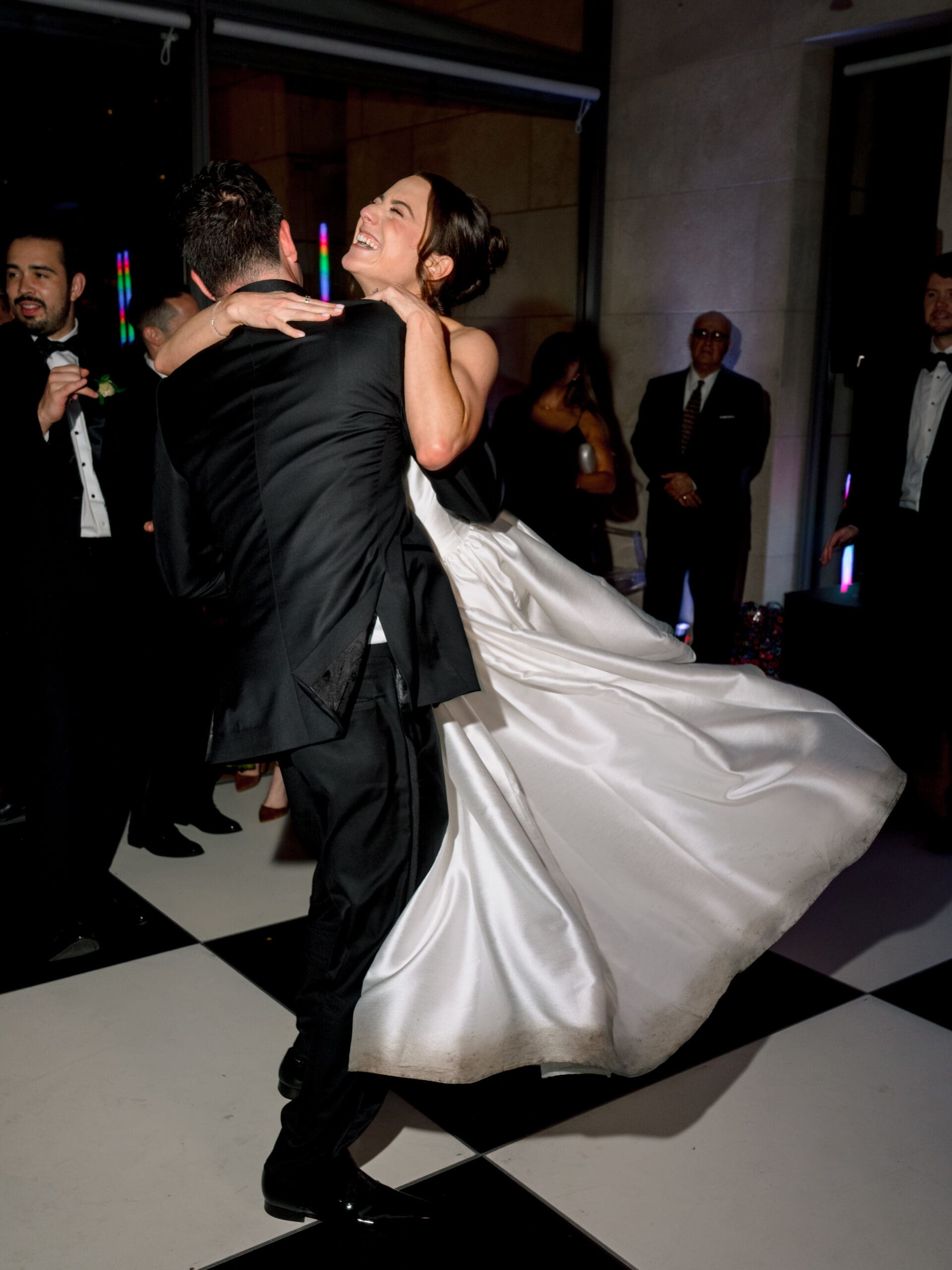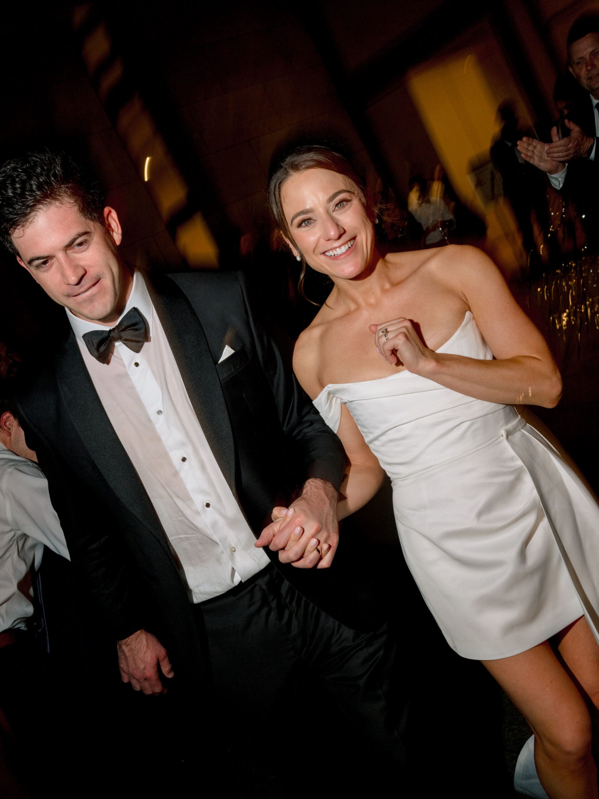The Nasher Sculpture Garden provided a stunning backdrop for this Dallas wedding, blending contemporary art with lush outdoor spaces. Originally planned as a fully outdoor garden celebration, the day took an unexpected turn when a flood warning hit Dallas. But Sarah had prepared—she’d paid two Etsy witches to keep the rain away, and they sort of came through. A sliver of sunshine appeared just as the ceremony began, allowing Sarah and Brandon to exchange vows outside before moving the reception indoors.