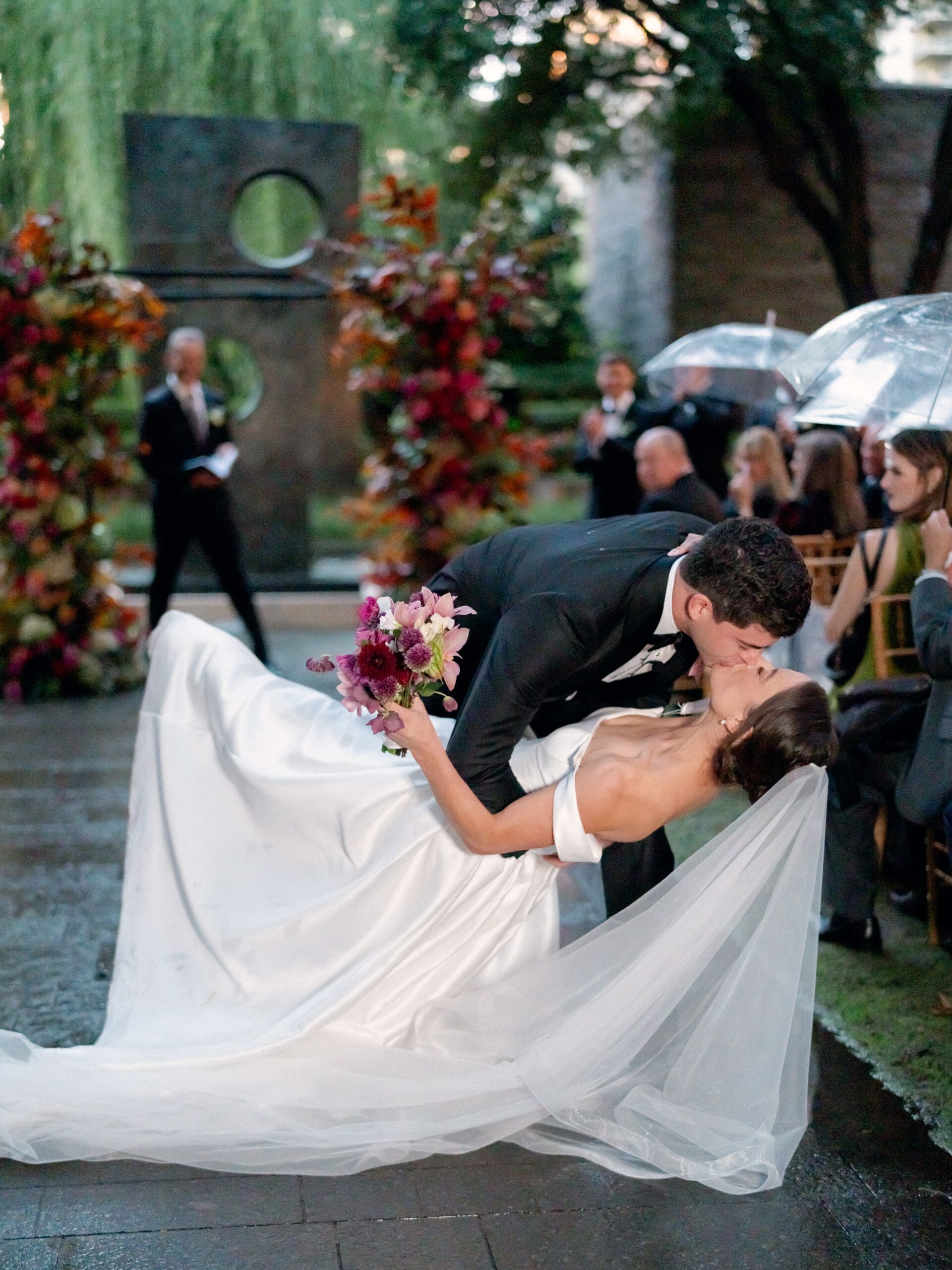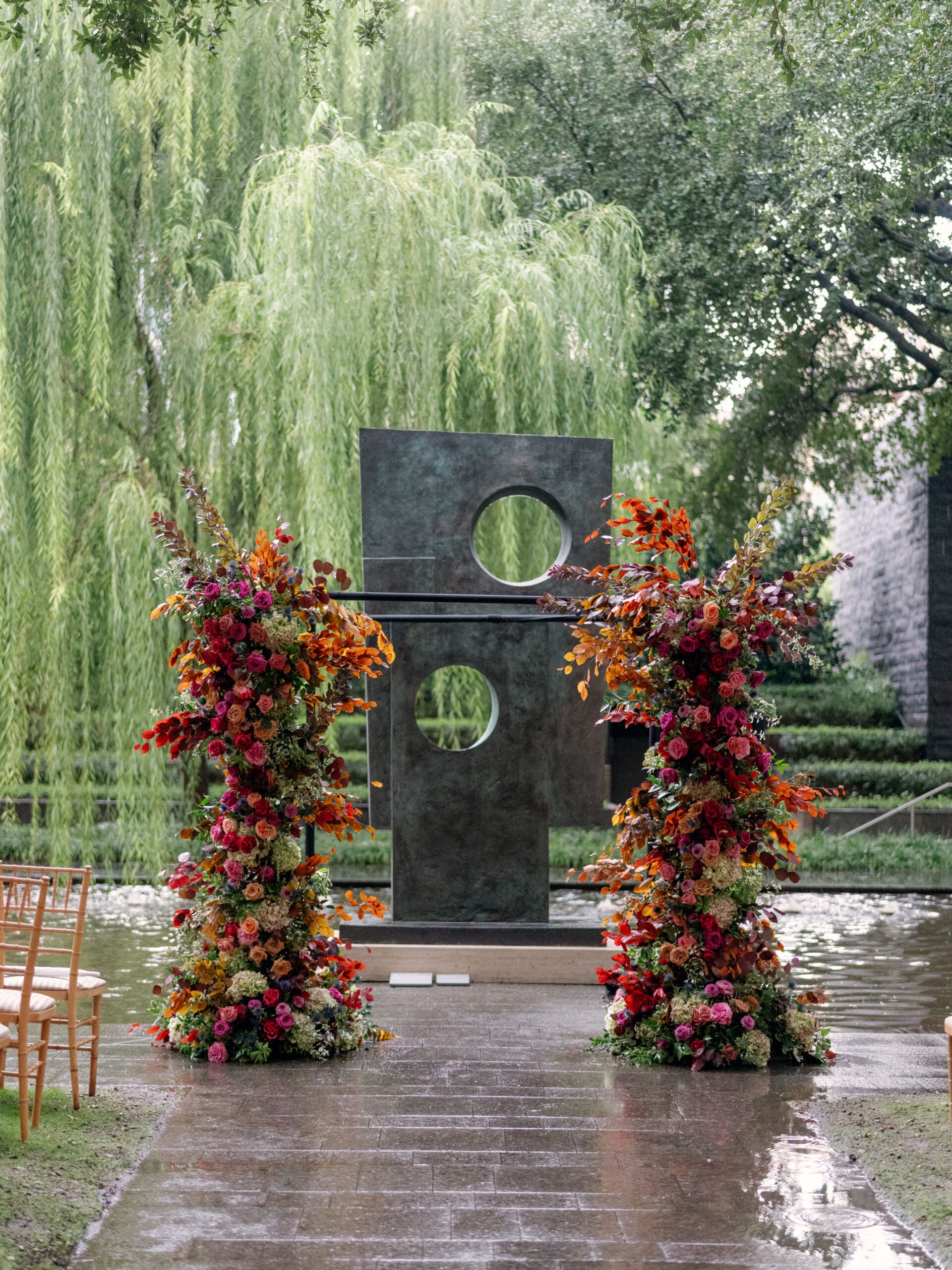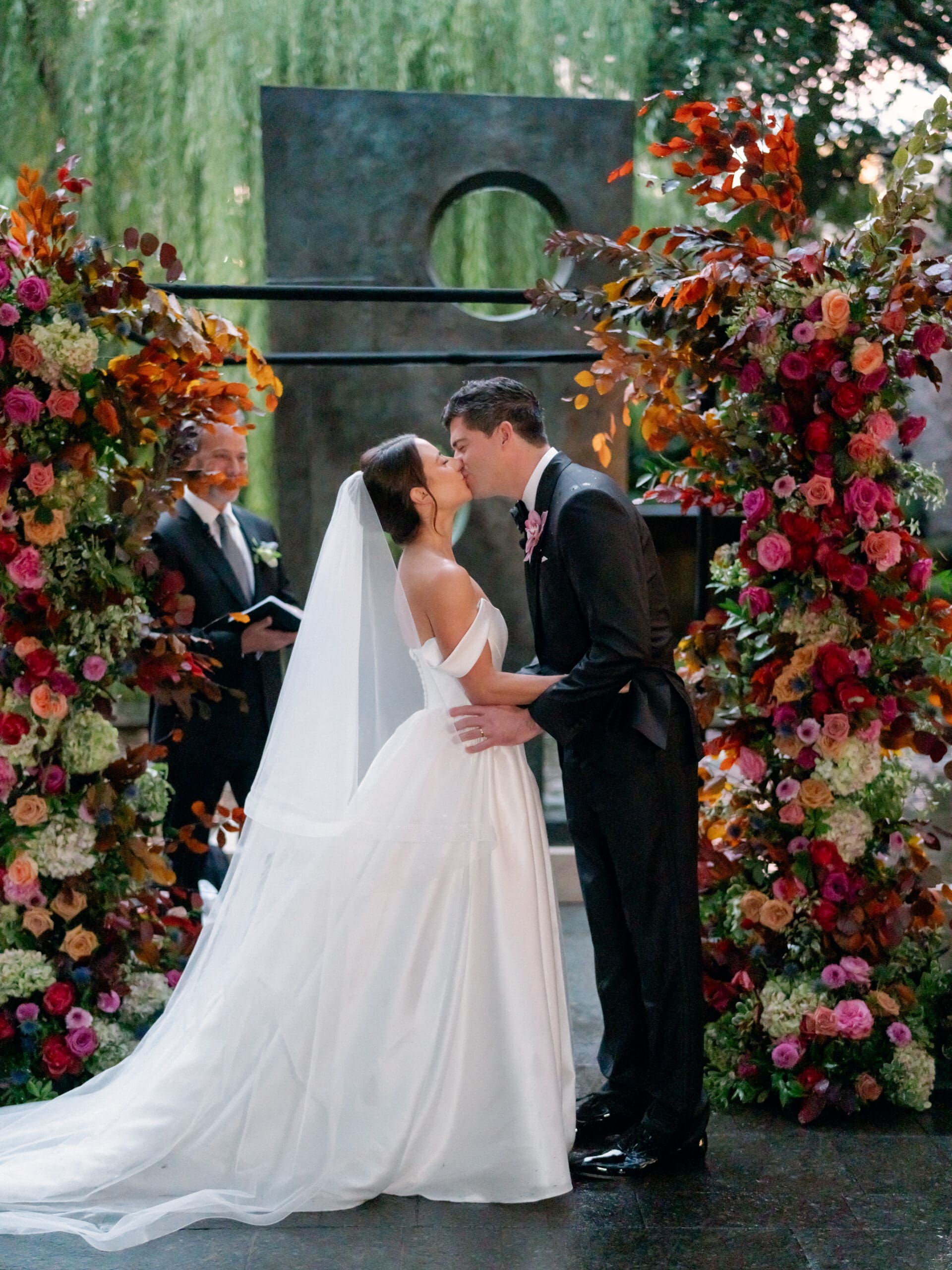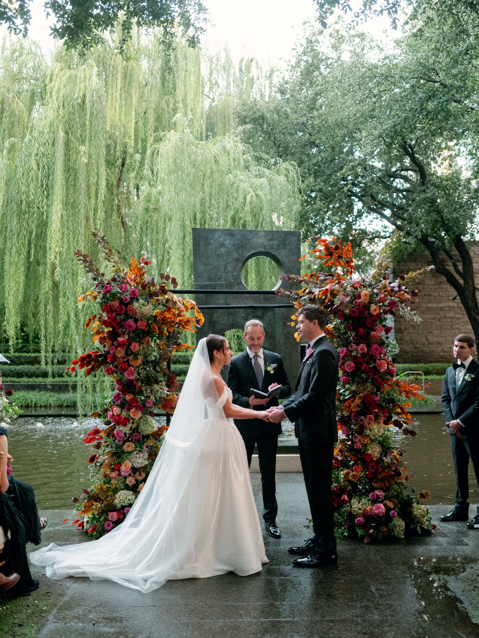 Sarah and Brandon brought their playful creativity and love of cozy fall aesthetics to their Nasher Sculpture Garden wedding in Dallas. They approached their celebration with a thoughtful eye for personal details, turning it into a true expression of their relationship—including their devotion to Cashew, their beloved cat. With moody pink hues and romantic fall tones throughout, the day felt intimate and elevated, even when Mother Nature had other plans.